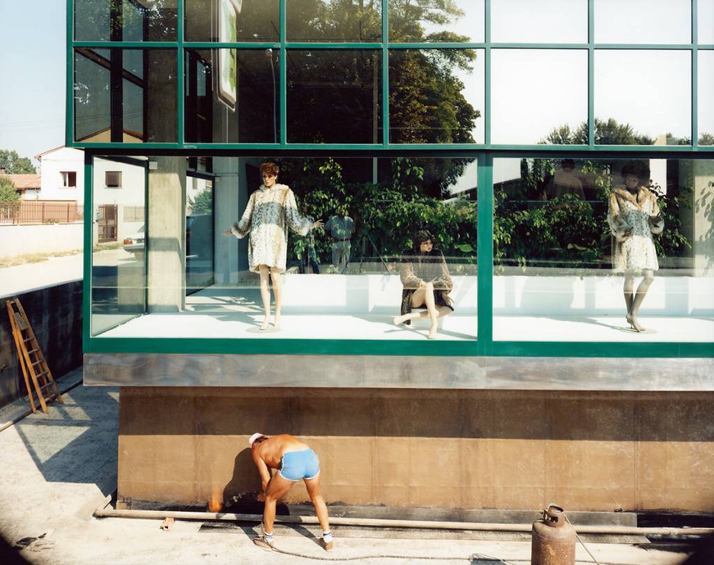 Une voiture garée sur un parking, la porte d’entrée d’un immeuble, un homme qui repeint un poteau, un mannequin en vitrine… Tout ce qui nous parait d’une banalité confondante devient le terrain de jeu du photographe. « Rien n’est sans importance, tout est digne d’attention » confie Guido Guidi dans une interview pour Aperture. Ici, l’artiste préfère les marges d’un territoire sans histoire, l’absence d’événement.